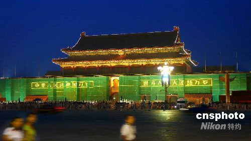 圖:夜幕下“梳妝”的天安門(mén)城樓別樣美
