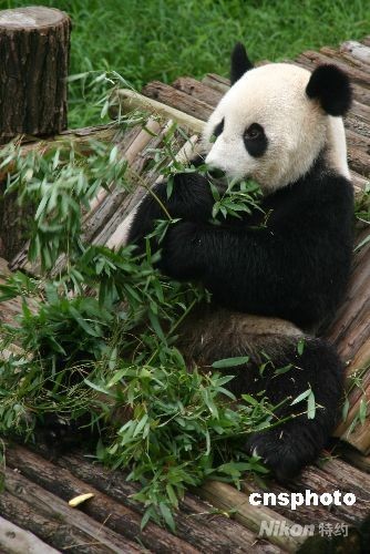 2008年8月31日,南京紅山森林動(dòng)物園提前一天為四川臥龍大熊貓美靈過(guò)生日。9月1日迎來(lái)熊貓美靈的四周歲生日,為讓它第一次在異鄉(xiāng)愉快地過(guò)生日,動(dòng)物園方面精心準(zhǔn)備,邀請(qǐng)了市民和小朋友們?yōu)槊漓`做生日蛋糕。中新社發(fā) 阿董 攝