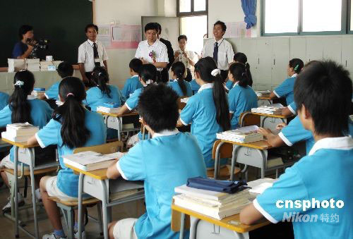 圖:四川地震災(zāi)區(qū)學(xué)生南寧開(kāi)學(xué)上課