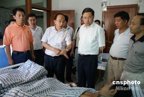 圖為四川省副省長(zhǎng)李成云在興文縣中醫(yī)院看望受傷人員。