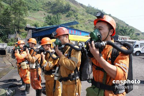 圖為救援人員準(zhǔn)備下井搜救失蹤人員。