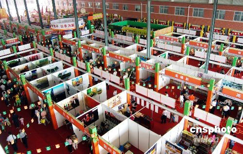 九月六日,首屆海峽兩岸農(nóng)產(chǎn)品采購訂貨會在福建南安閩臺農(nóng)產(chǎn)品市場舉行,來自兩岸農(nóng)產(chǎn)品經(jīng)銷商、采購商、企業(yè)家共三千多人出席。訂貨會設(shè)四百個標(biāo)準(zhǔn)展位,其中臺灣農(nóng)業(yè)主題館占一百一十七個。來自臺灣的一百多家企業(yè)集中展示蔬果、水產(chǎn)、肉類等臺灣農(nóng)業(yè)產(chǎn)品。當(dāng)天,兩岸客商共簽訂農(nóng)業(yè)合作項目及購銷總金額十九點六億元人民幣。圖為展銷會四百展柜無虛席。中新社發(fā) 傅丹丹 攝
