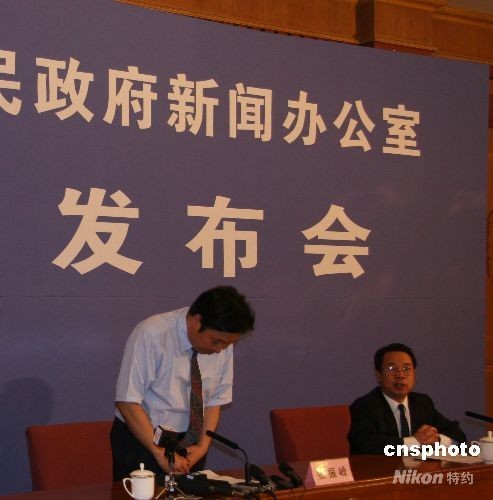 9月15日下午,在河北省政府舉行的新聞發(fā)布會(huì)上,石家莊三鹿集團(tuán)副總裁張振嶺宣讀了《石家莊三鹿集團(tuán)股份有限公司致社會(huì)各界的公開(kāi)信》,就“問(wèn)題奶粉”事故向社會(huì)各界人士及廣大消費(fèi)者表示最誠(chéng)摯的道歉,并鄭重聲明:三鹿集團(tuán)對(duì)8月6日以前生產(chǎn)的產(chǎn)品全部收回,消費(fèi)者如對(duì)8月6日以后的產(chǎn)品有異議、不放心,也將收回。同時(shí),三鹿集團(tuán)將不惜代價(jià)積極做好患病嬰幼兒的救治工作。圖為張振嶺鞠躬致歉。中新社發(fā) 高新國(guó) 攝