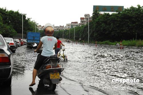 第14號強臺風“黑格比”9月24日清晨6點45分在廣東省電白縣陳村鎮(zhèn)海面登陸。省會廣州受臺風影響出現(xiàn)大風暴雨,行人出行受阻。中新社發(fā) 侯宇 攝