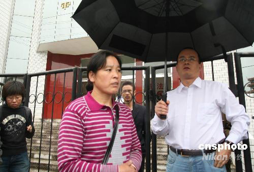 九月二十七日,“華南虎照”造假者周正龍因詐騙罪和非法持有彈藥罪在陜西旬陽縣人民法院公開開庭審理,沒有獲準入內旁聽庭審的周妻羅大翠(中)在法庭外等候消息。中新社發(fā) 程成 攝