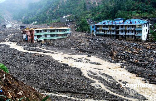 圖:泥石流吞沒(méi)大半個(gè)北川老城