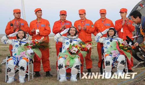 9月28日,神舟七號飛船返回艙順利著落,三名航天員翟志剛、劉伯明、景海鵬在經(jīng)過15-20分鐘的重力再適應后全部出艙。首先出艙的是翟志剛,第二個出艙的是劉伯明,第三個出艙的是景海鵬。