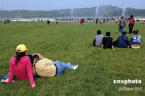 9月29日,北京奧林匹克森林公園露天劇場大草坪被迫準(zhǔn)許游人進(jìn)入休閑,草坪大面積遭到踐踏。北京殘奧會閉幕后,該草坪在禁止游人進(jìn)入時,一直有游客違規(guī)強行進(jìn)入,并不斷與保安人員發(fā)生沖突。鑒于近期警員、保安、志愿者紛紛休假離去,森林公園管理機(jī)構(gòu)正式撤除了草坪阻攔線,默許游人在此行走,滯留。中新社發(fā) 鄒憲 攝