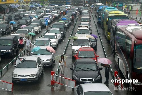 2008年10月4日消息,海南受今年第17號(hào)熱帶風(fēng)暴“海高斯”影響開始漸弱,瓊州海峽不同抗風(fēng)等級(jí)的船舶陸續(xù)復(fù)航。來(lái)自廣東、廣西、云南、福建等省的自駕車游客結(jié)束黃金周休閑游,開始返程過海,在海口秀英港等候乘船過海的自駕車排成了長(zhǎng)龍。中新社發(fā) 善平 攝