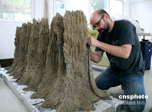 “十一”黃金周期間,來自美國、希臘、韓國、阿根廷等7個國家的16名陶藝大師會聚山東省淄川李梓源藝術(shù)中心切磋技藝,展示陶藝絕活。圖為美國檀香山夏威夷大學(xué)副教授、陶藝家布萊德·伊萬·泰勒正在創(chuàng)作作品。中新社發(fā) 閆盛霆 攝