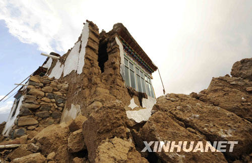 當(dāng)雄縣格達(dá)鄉(xiāng)受損的房屋。