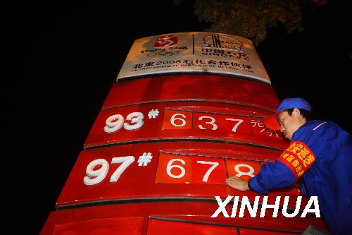 10月7日凌晨,北京一加油站的工作人員在更換汽油價(jià)格標(biāo)簽。當(dāng)日零時(shí),北京汽油價(jià)格上漲,93號汽油漲至每升6.37元,97號汽油漲至每升6.78元。新華社記者 邢廣利 攝
