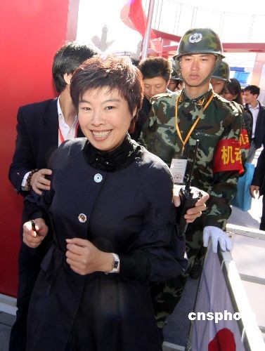 2008年10月10日,第八屆北京圖書節(jié)在地壇公園隆重開幕。北京師范大學(xué)教授、有“學(xué)術(shù)超女”之名的于丹在圖書節(jié)簽名售書。主辦方請(qǐng)來多名頭戴鋼盔的保安在現(xiàn)場(chǎng)維持秩序,保護(hù)于丹人身安全。中新社發(fā) 吳芒子 攝