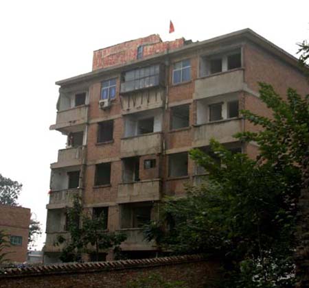 河南洛陽“最!贬斪討粼趪鴳c節(jié)前一天,家中被砸。為此該戶人家做出了一個驚人的舉動,在被強拆的樓頂插上了一面鮮艷的國旗,以此來捍衛(wèi)自己的家園。