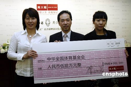10月15日,著名珠寶品牌周大福在國(guó)家體育總局,舉行名為“銘記2008,共享璀璨榮耀”的慈善捐贈(zèng)新聞發(fā)布會(huì),宣布將周大福Forevermark永恒印記“榮耀之星”的部分拍賣款項(xiàng)50萬(wàn)元人民幣,捐助予“中華全國(guó)體育基金會(huì)(中國(guó)運(yùn)動(dòng)員委員會(huì))”,這也是該委員會(huì)成立以來(lái)的首筆社會(huì)愛(ài)心團(tuán)體的公益捐贈(zèng),此筆善款將用于支持該委員會(huì)開(kāi)展體育公益工作,以號(hào)召更多企業(yè)關(guān)注和支持中國(guó)體育事業(yè)發(fā)展。周大福董事陳世昌先生、國(guó)家體育總局體育基金管理中心副主任、中華全國(guó)體育基金會(huì)副理事長(zhǎng)王彥敏先生與著名運(yùn)動(dòng)員周繼紅女士(國(guó)家體育總局游泳運(yùn)動(dòng)管理中心副主任、運(yùn)動(dòng)員委員會(huì)主任委員),錢紅女士(游壇“五朵金花”之一),高紅(“鏗鏘玫瑰”之一、老國(guó)家女足守門員)均蒞臨現(xiàn)場(chǎng)。此前拍賣的Forevermark永恒印記“榮耀之星”27.16克拉梨形美鉆,作為周大福專為2008年北京奧運(yùn)會(huì)獻(xiàn)禮之作,脫胎于重達(dá)70克拉的南非原產(chǎn)鉆胚。更為珍貴之處在于在其臺(tái)面上印記有源自周大福鉆石原胚全球合作伙伴——世界最大的鉆石原胚供應(yīng)商戴比爾斯集團(tuán)的“Forever mark”永恒印記”,其中特別珍選并全球唯一的“20080808”序列號(hào)碼,特別銘記2008北京奧運(yùn),銘記中華體育世紀(jì)盛事。中新社發(fā) 楊可佳 攝