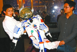 圖:翟志剛所穿的艙內(nèi)航天服在京亮相