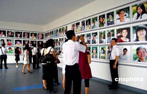 10月24日,在第六屆全國農(nóng)民運動會開幕之際,燦爛泉州2008大型攝影展在福建泉州海峽體育中心開展。采自泉州地區(qū)各行各業(yè)人群的2008張“笑臉”圖片,在環(huán)海峽體育中心主體育館二樓進行展示,成為福建最大的“笑臉墻”。中新社發(fā) 傅丹丹 攝