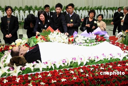 10月26日,中國著名導(dǎo)演謝晉追悼儀式在上海龍華殯儀館舉行,社會各界人士自發(fā)到場為一代電影大師送行。謝晉導(dǎo)演于10月18日凌晨在浙江上虞去世,享年85歲。他生于1923年,浙江上虞市人,主要代表作有《女籃5號》、《紅色娘子軍》、《牧馬人》、《天云山傳奇》、《鴉片戰(zhàn)爭》、《芙蓉鎮(zhèn)》等。中新社發(fā) 湯彥俊 攝