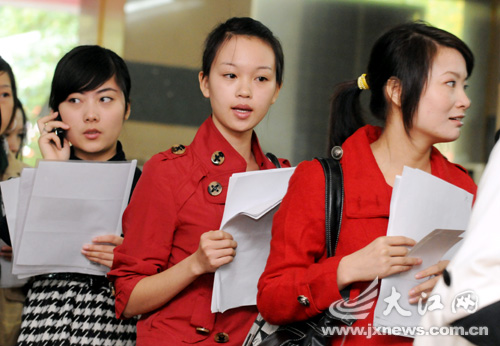 10月26日,首次來江西招聘國際航空小姐的新加坡國際航空互聯(lián)會對400余名女孩進(jìn)行了入圍面試。記者在現(xiàn)場看到,進(jìn)入面試的應(yīng)聘者必須用英文填寫個人簡歷,在面試過程中,要全程用英語交流。一位來自南昌航空大學(xué)的大四學(xué)生告訴記者,她們此次有6名同學(xué)前來面試,但進(jìn)入復(fù)試的只有兩人,其余四人都卡在英語關(guān)和反應(yīng)能力上。