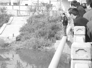 27日上午9點(diǎn)多,拖板橋南側(cè)站滿了看熱鬧的市民。大家都扒在橋欄桿上,向河里探頭張望,一個二十多歲的小伙子翻過橋欄桿,站到臨河四五米的管道上釣魚。這條黃色的管道直徑只有三十厘米,圓溜溜的,很難掌握平衡,但小伙子毫不在意,拿著一根魚竿,目不轉(zhuǎn)睛地盯著河面。