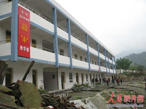 2008年10月,一批來自成都市的游客正在“5·12”汶川大地震“最!苯虒W(xué)樓地震遺跡內(nèi)參觀。據(jù)悉,“5·12”汶川大地震發(fā)生后,一條地震斷裂帶剛好從四川省彭州市白鹿鎮(zhèn)中心校校區(qū)內(nèi)穿過,從而導(dǎo)致一棟新建教學(xué)樓被整體抬高近3米,樓體依然屹立原地不倒;而在其旁邊的教師宿舍完全垮塌,舊教學(xué)樓、辦公樓均成危房,與“長(zhǎng)高”的新教學(xué)樓相對(duì)10多米遠(yuǎn)、且在同一時(shí)間施工建設(shè)、同一地面高度的一棟四層新教學(xué)樓,成了鮮明的參照物。會(huì)“長(zhǎng)高”的教學(xué)樓便被當(dāng)?shù)厝朔Q作是:“5.12”汶川特大地震“最!钡慕虒W(xué)樓。彭州市相關(guān)部門特將此校教學(xué)樓地震遺跡作為旅游資源開發(fā)利用。目前,每天都有二三百人的游客來此觀光“最牛”的教學(xué)樓地震遺跡。
