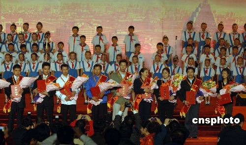 11月2日是第二個重慶農民工日,當?shù)嘏e行“第三屆重慶十佳農民工頒獎”儀式,集體表彰過去一年為重慶經(jīng)濟社會發(fā)展做出杰出貢獻的農民工代表。圖為獲獎農民工集體合影。中新社發(fā) 郭晉嘉 攝