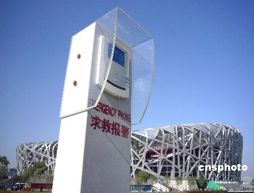2008年11月2日,北京國家體育場“鳥巢”四周設(shè)立了求救報(bào)警器,確保中外游客在遇到突發(fā)情況時(shí)迅速報(bào)警,全方位的保障奧運(yùn)中心區(qū)游客的人身安全。 中新社發(fā) 玉龍 攝