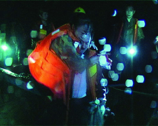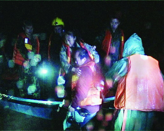 晚上8時30分許,距離兩人被困已經(jīng)過去了整整6個多小時,葛、田饑寒交迫,著急地向岸上呼救。岸上的救援隊員一邊喊話穩(wěn)定兩人情緒,一邊做好救援準備。晚上9時許,6名救援隊員組成了救援小分隊,坐上沖鋒舟飛快地駛向孤島,將葛、田二人接上沖鋒舟救回,整個過程只花了12分鐘。