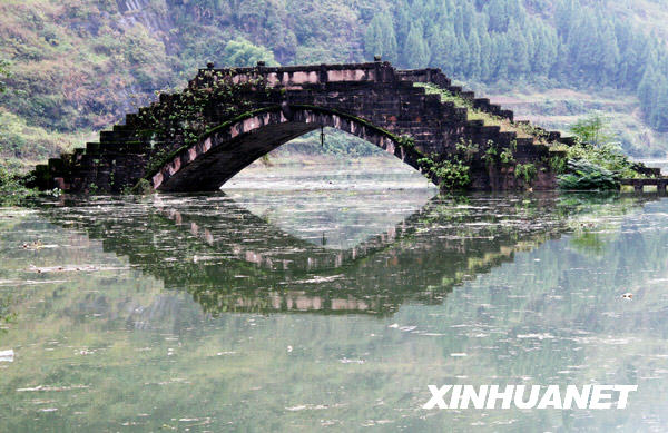 隨著三峽工程試驗性蓄水繼續(xù)進行,位于重慶市云陽縣南溪鎮(zhèn)的述先古橋大部分橋體已沒入水中。始建于1870年的云陽縣述先橋長75米、高14米、寬7.5米,曾是云安鹽業(yè)出川的陸上重要通道。在三峽工程試驗性蓄水前,述先橋作為重點文物古跡經(jīng)過反復論證,最終確定就地加固、防水防蝕修繕入水保護方案。本次蓄水完成后,述先橋?qū)⑷繘]入水中,今后將隨著三峽工程季節(jié)性防洪水位調(diào)節(jié)而時隱時現(xiàn)。本次蓄水是對橋體承受浸泡力的檢驗,有關(guān)方面正在密切監(jiān)測相關(guān)數(shù)據(jù)。