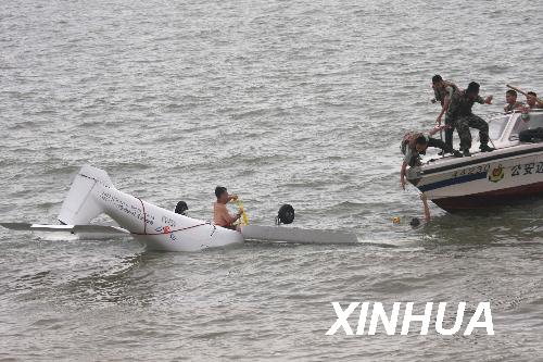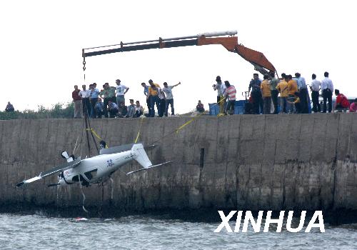 11月5日,一架小型飛機在珠海進行試飛時墜入海中,機上唯一一名飛行員在事故中左膝受輕傷。失事小型飛機的型號為“MCR4S”,頭尾長約8米,翼展約5米,是珠海鷹洲飛機制造有限公司與法國DYNALOE公司聯(lián)合研制的單引擎四座小型民用飛機。5日上午10時30分,一名法國工程師單獨駕駛該飛機從珠海市九洲直升機場起飛,飛行約40分鐘后,于11時10分左右墜入海中。新華社發(fā)(席湖 攝)