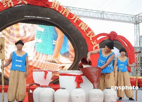 11月7日,2008中國紹興黃酒節(jié)在浙江紹興舉行。紹興是黃酒之鄉(xiāng),也是全球黃酒生產(chǎn)量最大的城市。目前全市有黃酒企業(yè)86家,年產(chǎn)量達(dá)到41.3萬噸、年銷售額33.2億元,分別占全國的17.2%和35.6%。紹興黃酒行業(yè)擁有7個(gè)中國馳名商標(biāo)、4只中國名牌產(chǎn)品和6家中華老字號(hào)。今天展示的15家“紹興黃酒”冠名企業(yè),是其中的佼佼者,他們的總產(chǎn)量和銷售收入占據(jù)全市的90%。黃酒節(jié)期間,紹興將舉辦黃酒展覽會(huì)、黃酒開釀儀式,酒類趣味活動(dòng),黃酒品牌推廣文藝活動(dòng),黃酒品嘗活動(dòng)以及院士紹興行和一系列經(jīng)貿(mào)文化活動(dòng)等。中新社發(fā) 袁云 攝