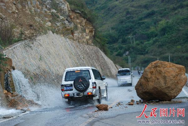 11月7日,貴州省黃平縣重安江鎮(zhèn)合家村凱(里)至施(秉)旅游公路上,一巨石山砸向公路,把正在路過的當?shù)匾晃?3歲的男性村民砸死。事故原因是由于持續(xù)降雨,引發(fā)地質(zhì)災(zāi)害,山上巨石滾落造成的。(匿名)