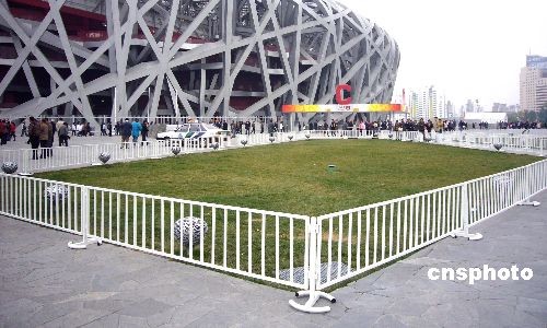 2008年11月8日,國家體育場(“鳥巢”)廣場四周的綠地全部新設(shè)了漂亮的護(hù)欄,為草坪及設(shè)施增加了一道安全屏障,美化了環(huán)境。中新社發(fā) 玉龍 攝