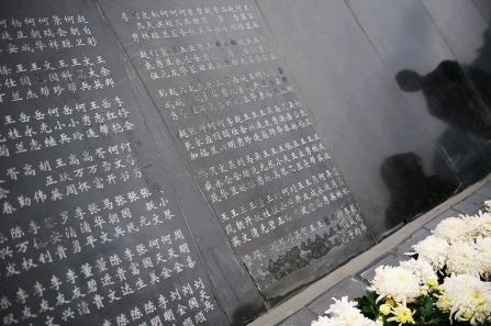 紀念臺上,鐫刻著地震中遇難者的名字 攝影 雷宇