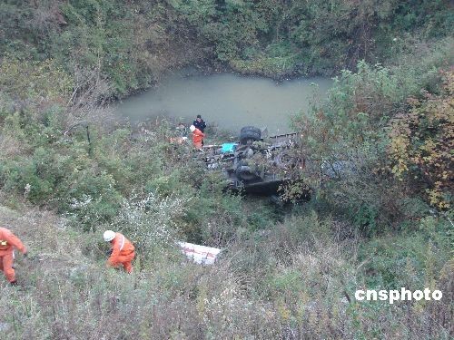 11月12日下午5時(shí)許,一輛從貴州省六盤(pán)水市駛往畢節(jié)地區(qū)威寧縣的貨車在102省道威寧縣境內(nèi)張家村一轉(zhuǎn)彎道突然失控,一頭將路邊的防護(hù)石墩撞垮,翻下50余米高的山谷,當(dāng)場(chǎng)造成2人受傷,1人遇難。中新社發(fā) 潘立遠(yuǎn) 攝