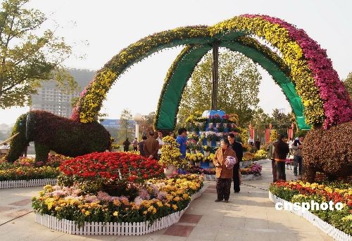 11月14日,2008年湖南婁底秋季菊花展亮相婁星廣場、青山公園和主要街道臨街窗口單位門前,展出時間為11月13日至11月28日,70家參展單位緊緊圍繞“和諧、共進”這一主題,精心構(gòu)思,巧妙布展,把花展布置得花團錦簇,亮點紛呈,美不勝收,共展出各類花卉品種100多個20多萬盆。中新社發(fā) 龔高翔 攝
