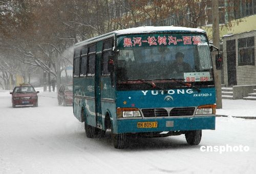 11月15日,受強(qiáng)冷空氣的影響,黑龍江省出現(xiàn)一次降雪和降溫,其中黑河、伊春、綏化北部有中到大雪,哈爾濱東北部、鶴崗有小到中雪,其它地區(qū)為小雪天氣。黑龍江省氣象臺(tái)繼續(xù)發(fā)布道路結(jié)冰黃色預(yù)警信號(hào)。中新社發(fā) 邱齊龍 攝
