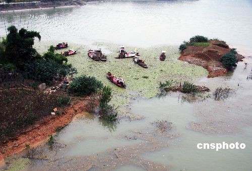 11月18日,重慶市云陽(yáng)移民新縣城濱江庫(kù)岸公園一帶水域,三十多艘打撈船展開協(xié)作會(huì)戰(zhàn)大攻勢(shì),準(zhǔn)備“吃掉”最后的集合漂浮垃圾。從三峽庫(kù)區(qū)腹心區(qū)縣清漂工作現(xiàn)場(chǎng)獲悉,目前整個(gè)三峽蓄水清漂已進(jìn)入“收官”大戰(zhàn),大面積滯留、回旋、淤積漂浮物已從江面清除上岸。中新社發(fā) 饒國(guó)君 攝