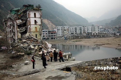 “5 12汶川大地震”發(fā)生后,因唐家山堰塞湖、“9 24”泥石流的洗劫,北川老縣城遺址發(fā)生很大變化,初冬時節(jié),人們經過特批來到北川老縣城,參觀唐家山堰塞湖經過這里的痕跡。中新社發(fā) 肖龍聯(lián) 攝