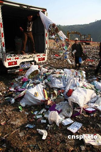 11月26日,浙江州一民企藥店在溫嶺生活垃圾處理場公開銷毀價值5萬多元的過期藥品,這是該公司今年第二次銷毀過期藥品。自三鹿奶粉中發(fā)現(xiàn)三聚氰胺事件后,食品安全越來越受到人們的關注和重視,作為臺州境內較有影響的藥品銷售企業(yè),該藥店自覺嚴格按照《藥品管理法》的要求,分類整理庫存藥品,最近共整理出感冒藥、抗菌藥等過期藥品500多公斤,總價值5萬多元。中新社發(fā) 劉振清 攝