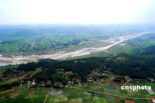 北川新縣城所選位置與綿陽市安縣黃土鎮(zhèn)接壤之處,北距北川老縣城約33公里,比原定的黃土鎮(zhèn)板凳橋距離老縣城近了約6公里;南距綿陽市區(qū)約32公里,安昌鎮(zhèn)與永安鎮(zhèn)間東側,具體位置尚未透露。圖為航拍的永安鎮(zhèn)與安昌鎮(zhèn)之間地貌。中新社發(fā) 胥輝 攝