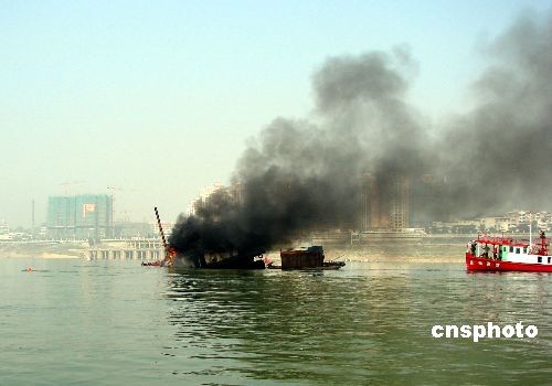 十一月三十日早上九時(shí)三十分許,廣西梧州西江江面一工程船兩度爆炸,當(dāng)?shù)孛癖姺Q,巨響幾公里外都能聽到。知情者透露,爆炸至少造成工程船上兩人重傷、四人輕傷。目前事發(fā)原因正在進(jìn)一步調(diào)查了解中,傷亡人數(shù)有待核實(shí)。中新社發(fā) 王刀 攝