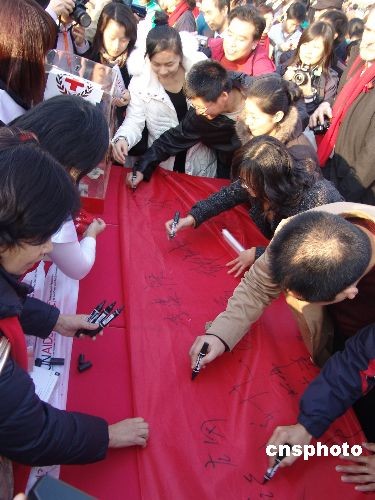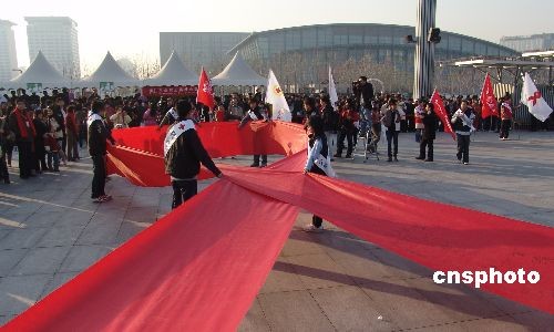 12月1日,在北京舉行的紀(jì)念世界艾滋病日大型宣傳活動(dòng)上,一些青年打開一幅巨型紅絲帶征集簽名,以表達(dá)對(duì)艾滋病感染者、病人及其家庭的關(guān)愛。當(dāng)天是世界艾滋病日,中國紅十字會(huì)總會(huì)、聯(lián)合國艾滋病規(guī)劃署和紅十字會(huì)與紅新月會(huì)國際聯(lián)合會(huì),共同在北京舉辦“同一個(gè)夢(mèng)想——沒有歧視的世界”紀(jì)念世界艾滋病日大型宣傳活動(dòng)。中新社發(fā) 范欣 攝