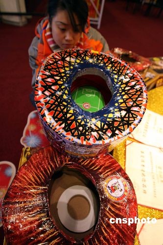 十二月七日晚,北京奧運鳥巢煙花獨家生產(chǎn)及燃放實施單位—熊貓煙花推出的“!蹦犋B巢系列煙花,與部分京城市民見面。其中一款“鳥巢”形狀的噴花類煙花,立即成為人們關(guān)注的焦點。中新社發(fā) 任海霞 攝