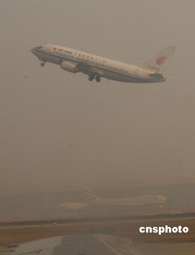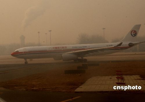 12月11日上午,北京首都國際機(jī)場周邊地區(qū)少量降雪,形成霧霾天氣,造成部分進(jìn)出港航班延誤。中新社發(fā) 趙振清 攝