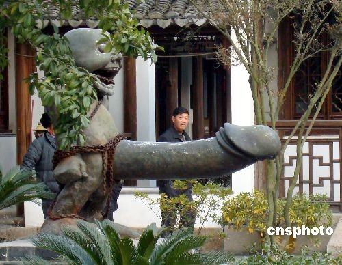近日,參觀者在蘇州古鎮(zhèn)同里“中華性文化博物館”內(nèi)觀看雕塑“綁不住的地方”。 據(jù)悉,這座面積約7000平方米的性文化博物館是4年前從上海搬遷到同里的,展出古代性文化實(shí)物、雕塑、圖畫、書籍等展品2000件左右。中新社發(fā) 王建康 攝