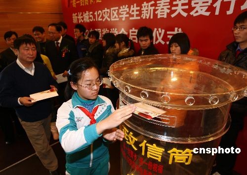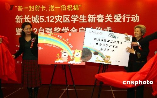 12月22日,“新長城5·12災(zāi)區(qū)學(xué)生新春關(guān)愛行動”在北京啟動,市民只需花費(fèi)10元人民幣,就可為災(zāi)區(qū)學(xué)生郵寄一枚新年愛心賀卡,其中還包含有為“自強(qiáng)獎學(xué)金”捐獻(xiàn)的善款。愛心賀卡是由中國扶貧基金會與北京市郵政公司聯(lián)合特別發(fā)行的,且郵資封上已經(jīng)印有小學(xué)生名址,捐購賀卡的愛心人士只要寫上自己的祝福,就能直接郵寄出去。中新社發(fā) 杜洋 攝