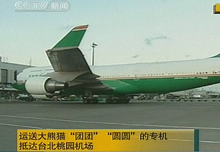 12月23日下午5時許,運送大熊貓“團團”“圓圓”的專機抵達臺北桃園機場。點擊觀看“團團”“圓圓”赴臺報道圖片專輯