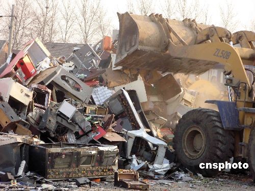十二月二十六日,北京警方對收繳的非法賭博機(jī)進(jìn)行銷毀。中新社發(fā) 任海霞 攝