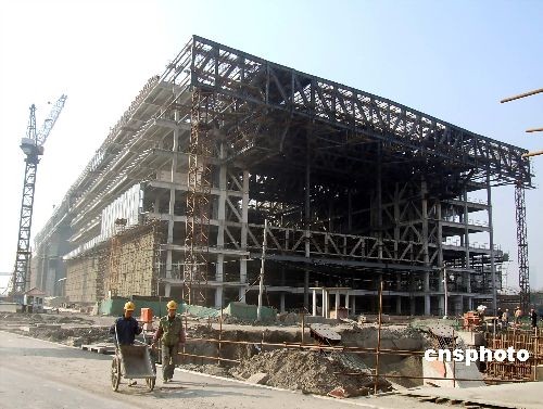 12月28日,中國2010年上海世博會主題館結(jié)構(gòu)封頂。作為上海世博會的永久性場館之一,主題館在世博會期間將承擔(dān)演繹、展示“城市,生命”、“城市,星球”和“城市,人”的主題,世博會后將轉(zhuǎn)為標(biāo)準(zhǔn)展覽場館。中新社發(fā) 井韋 攝